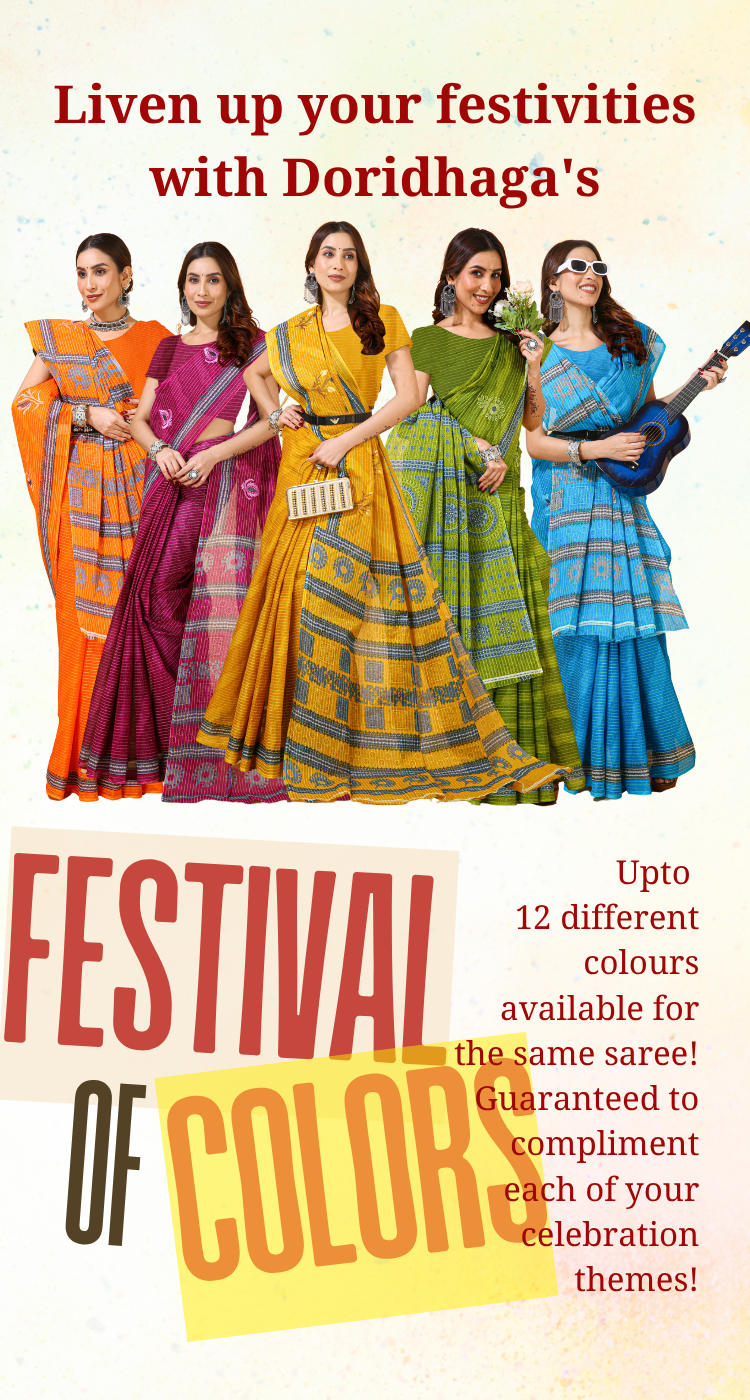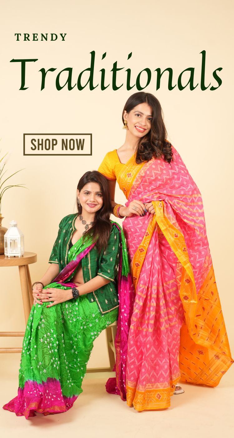 Utsav - Pink Yellow Cotton Ikat Printed Saree