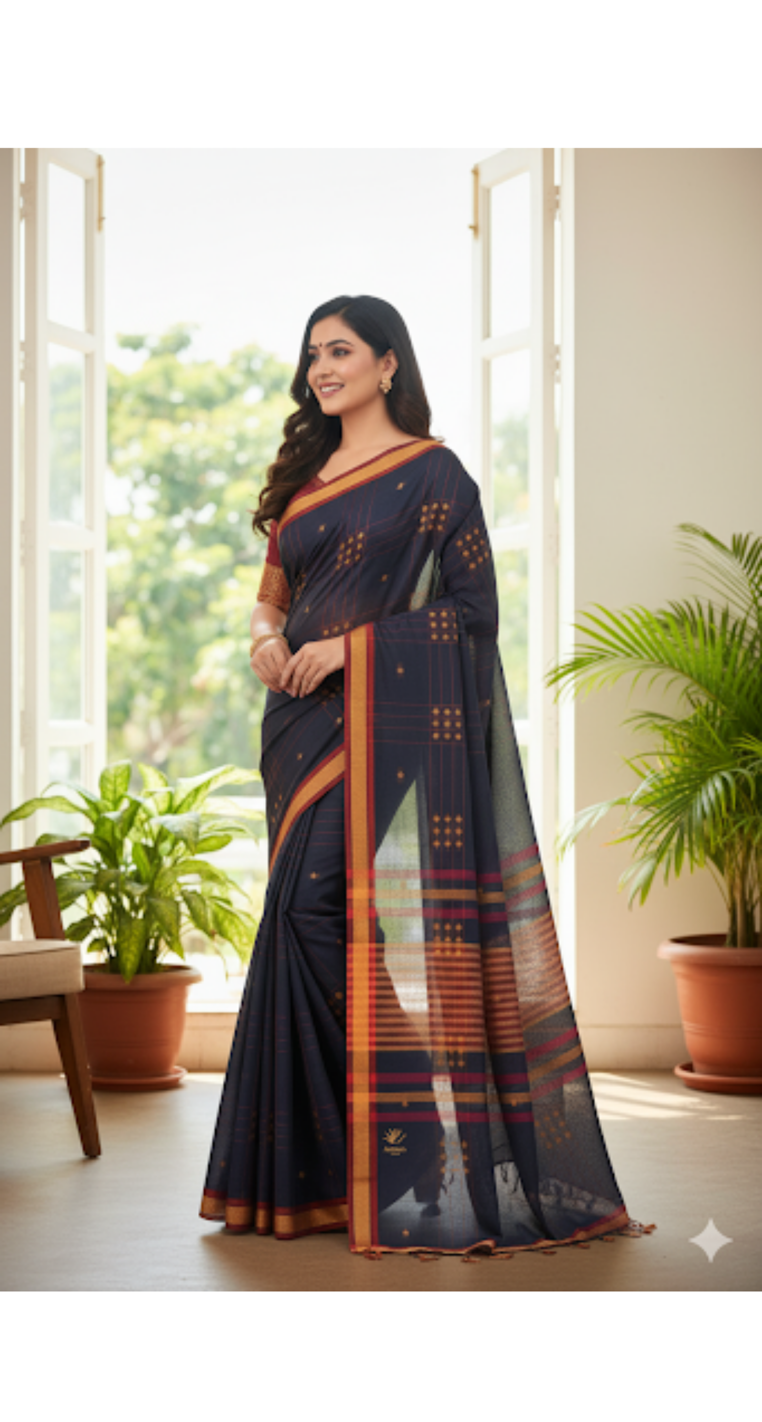 Gulmohar - Yellow Grey Cotton Printed Saree